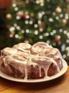 - Cinnamon Rolls with brown sugar and cinnamon filling and glaze on side; $22 for six