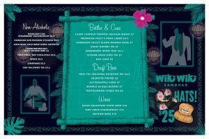 Wiki Wiki Sandbar resides in a 6,500-square foot space that incorporates local artists’ work that embody the facets of tiki culture. The four dining rooms have different themes including: the Octopus Bar featuring the work of Jeff Kopish; the Sunset Room featuring a sunset mural by Suzanne Allen; the Wave Room featuring a massive sculpture made of Japanese glass floats by KHA; and a traditional tiki bar that resides on the top floor with views of the Atlantic Ocean and dioramas by artist Hirona Matsuda. Visitors can expect South Pacific-themed dinners, festive drinks, live music, and weekend brunches served in each unique space.