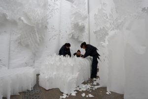 - Light and Dark Gardens – Oversized foliage made from cut paper, transforms the gallery into an overgrown forest. As the viewer approaches parts of the garden, the foliage is triggered by the motion and backs away, withdrawing in a defensive mode of self-protection. The narratives that run through the two gardens represent different sides of the same story or event, giving a Rashomon-like account of the complexity of human experience and perspective. The gardens represent a utopia and its opposing dystopia. Within this large-scale installation, Ma will use sound and projected video elements to create a rich multimedia experience.