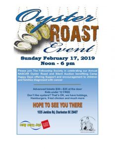On Sunday, February 17th, Camp Happy Days will host the 19th annual NASCAR Oyster Roast and Silent Auction, presented by The Fellowship Society of Charleston. The oyster roast will be held at 1035 Jenkins Rd. in West Ashley from noon to 6 pm. The event will include an oyster roast, silent auction, food, games, and raffles.