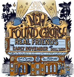 Pop-punk icons New Found Glory will bring their “From The Screen To Your Stereo To Your Town” tour to the Music Farm on Thursday, May 30th at 6:30 pm. The band will be joined by special guests Real Friends, The Early November, and Doll Skin. New Found Glory will be touring in support of the next chapter in their From the Screen to Your Stereo compilation series where they cover classic songs that have appeared in movies. Past albums in the series have included covers of tracks like “My Heart Will Go On,” “The Goonies ‘R’ Good Enough,” “Kiss Me,” “Iris,” “King of Wishful Thinking,” and “Don’t You (Forget About Me).”