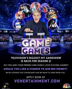 Do you love playing games? Would you like a chance to win lost of money? You could get that chance if you impress representatives from Ellen’s Game of Games on NBC.