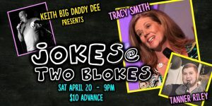Host Keith “Big Daddy” Dee is bringing a hilarious stand-up comedy show to Two Blokes Brewing in Mount Pleasant. “Jokes at Two Blokes” will make its debut on Saturday, April 20th at 9 pm with Comedy Central’s Tracy Smith and Tanner Riley.
