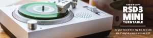 New this RSD is the Crosley RSD3, a mini-turntable that plays 3” records. Epitaph Records and Third Man Records have created a set of four “blind box” 3” records that play only on these turntables. The songs contained are roughly three minutes. All the records are packaged the same, so you don’t know which record you’re getting.