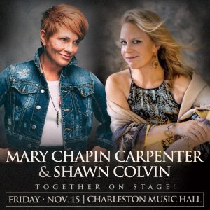 Mary Chapin Carpenter & Shawn Colvin will perform at the Charleston Music Hall on Friday, November 15th at 8 pm. Carpenter and Colvin – longtime friends for over 30 years – will appear on stage together as an intimate acoustic duo, swapping songs and sharing stories.