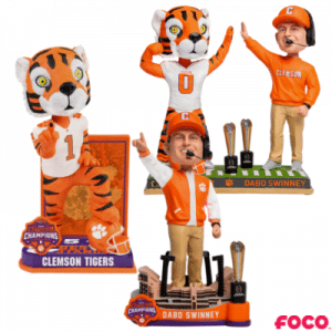 The limited edition, handcrafted bobbleheads, which are being produced by FOCO, are expected to ship in August 2019. The mascot bobblehead is $45, the Dabo bobblehead is $55 and the dual bobblehead is $70, and shipping is a flat rate of $8 per order. In addition to being available on the Hall of Fame and Museum’s website, fans can also find them at FOCO.com.