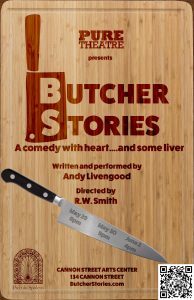 A regular in the Charleston comedy scene, audiences will know Livengood from his work at Theatre 99. He is excited to be partnering with Pure Theatre to create a theatrical one man show.
