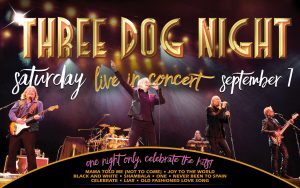 The legendary band is celebrating nearly 5 decades together. In the years 1969 through 1974, no other group achieved more top 10 hits, moved more records, or sold more concert tickets than Three Dog Night. The group had 21 consecutive Top 40 hits, including 3 No. 1 singles, 11 Top 10’s, 18 straight Top 20’s, 7 million-selling singles, and 12 straight RIAA Certified Gold LPs. The hits appeared on best selling charts in all genres (pop, rock, and country). Tens of millions of Three Dog Night records have been sold through the years.