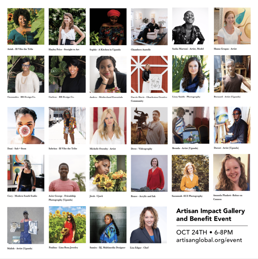 The evening will include an art gallery featuring over 30 premier artists from Charleston and Uganda, a silent auction, speakers, interactive media, a pop-up market of local and global artisan products, light hors d’oeuvres, cocktails and more.