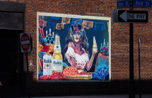 Located at 516 King Street, the AR experience depicts vibrant, traditional Día de Los Muertos artwork with three-dimensional marigolds with fluttering pedals, an ofrenda, illuminated candles, and an interactive La Catrina whose arm turns into a skeleton as she flicks the cap off a Modelo Especial bottle and hands it to the viewer.