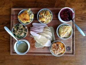 You can choose items like Smoked Ham & Turkey (available by the pound), Potato Gratin, Mashed Sweet Potatoes, Green Bean Casserole, Cornbread Stuffing, Hoppin’ John, Cranberry Sauce, Gravy, Rolls, Berry Cobbler, Apple Cobbler, and Game Changer Mix (available by the gallon).