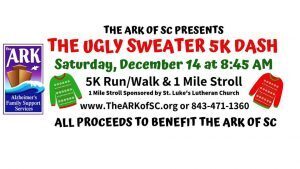 “Caregiving is demanding and can be overwhelming to take care of a loved one with Alzheimer’s or a related dementia and too much stress is not good for anyone,” Peg Lahmeyer, executive director of The ARK, said. “Our hope is that the Ugly Sweater 5K Dash participants will have a great time while supporting The ARK’s programs for those living with Alzheimer’s and their caregivers who are caregiving 24/7.”