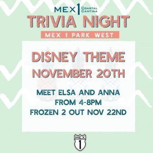 On Wednesday, November 20th, Mex 1 Coastal Cantina in Park West will host a evening of Disney themed trivia – just two days before the new Frozen 2 movie comes out.
