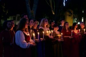 The College of Charleston Madrigal Singers is an auditioned ensemble made up of students from the College’s Concert Choir that specializes in chamber music ranging from the Renaissance to the present. The Madrigal Singers are perhaps best known for their annual Yuletide Madrigal Feast and are also annually featured on the Early Music Series and the Young Artists Series in the Piccolo Spoleto Festival. They also frequently have performed and toured with Steve Rosenberg and Charleston Pro Musica, and they function as the community outreach arm of the choral program, performing for various civic functions and charitable organizations.