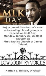 Lowcountry Voices is also participating in a Martin Luther King Jr. tribute concert on Saturday, January 18th in North Charleston.