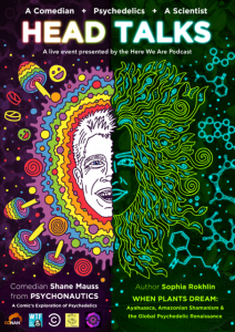 Award-winning stand-up comedian and science podcaster Shane Mauss will bring “Head Talks Live” to Theater 99 on Wednesday, February 5th at 8 pm. “Head Talks” combines comedy, science, and psychedelic research. Mauss opens the show with his brainiest stand-up about the history of psychedelics followed by his special guest, anthropologist Sophia Rokhlin, who takes the stage to talk about the global spread of ayahuasca and her book When Plants Dream.