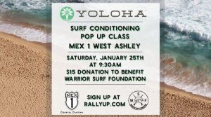 Mex 1 Coastal Cantina and Yoloha Yoga Factory are stoked to offer a Surf Conditioning pop-up class at the flagship Mex 1 in West Ashley on Saturday, January 25th with proceeds benefiting Warrior Surf Foundation.