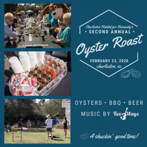 Charleston Habitat for Humanity’s 2nd Annual Oyster Roast will be held on Sunday, February 23rd from 1 pm to 5 pm at Founders Hall (1500 Old Towne Road, Charleston). There will be local oysters, BBQ, craft beer, lawn games ,and live music by Two 3 Ways. All proceeds benefit Charleston Habitat for Humanity’s mission to provide affordable housing to deserving families in the Lowcountry.