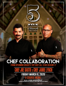 Bravo’s “Top Chef All Stars” Jamie Lynch and Joe Sasto to Host Dinner at 5Church