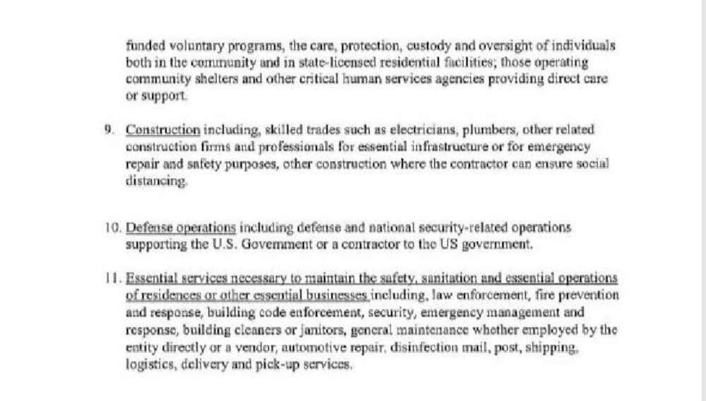 Here is a link to the ordinance. Below you can see what is deemed “essential” (click to enlarge).