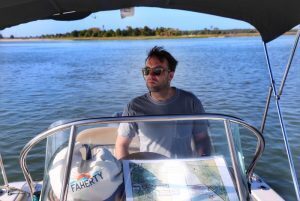 My best (and last) job there was teaching sailing at CofC. One Sunday in June (Father’s Day, actually), Stephen Colbert showed up at the dock with his son, hoping to take a boat out. I helped him rig the sailboat and then towed them out of the marina. After their sail, while I was towing them back in, Stephen thanked me for helping him. I took that as a cue to (annoyingly) ask him for advice. I told him I was hoping to work in entertainment one day, and he told me that I should just move to NYC and find whatever opportunities I could.