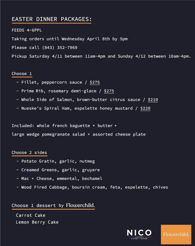 Charleston Restaurants Offering Easter Dinner To-Go (2020)
