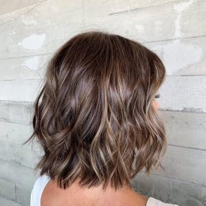 Highlighting your locks is a great way to give your layered bob some life. This hair is trimmed an inch below the jaw length. The layers at the bottom have a deep and dark brown colour. The layers added on the crown are choppy and stylish. They are pretty full of blonde highlights. Include a loose wave across the top layers to come up with a wonderful wavy haircut that is sure to steal the show.