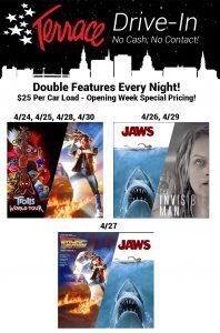 The Terrace Theater on James Island this week announced that they will be offering drive-in movies. In a post on Facebook, the theater said they received written approval from the Governor’s office and the blessing of the County Sheriff’s office to offer this socially-distant movie experience.