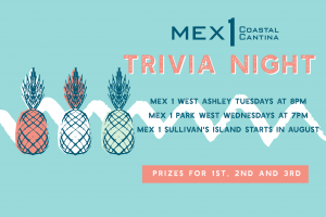 Trivia Night is starting back up at Mex 1 Coastal Cantina. The West Ashley and Park West locations are up first, while the Sullivan’s Island restaurant will start in August.