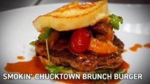 This week’s Friday lunch menu features eight signature burgers – all served with truffled herb fries – and six signature sides. Highlighting the menu is the Smokin’ Chucktown Brunch Burger (pictured at right), topped with local shrimp and a tomato gravy on a grit-cake bun, which was recently named one of the best burgers in Minor League Baseball on milb.com. The menu also features some old favorites like the Smoked Cotton Candy Jacked Burger (featured at the ballpark in 2017) and even a burger in honor of the RiverDogs’ relationship with the Samsung Lions of the Korean Baseball League – the Samsung Bulgogi Burger. All burgers on the menu are available in limited quantity each week.