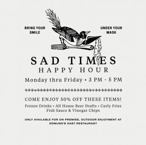 Edmund’s Oast today announced the launch of the new “Sad Times Happy Hour,” a stopgap for their normal Happy Hour offerings.