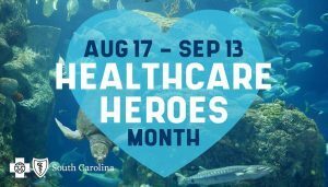 Thanks to the support of BlueCross BlueShield of South Carolina, all employees from Roper St. Francis, Trident Medical Center, East Cooper Medical Center, and the Medical University of South Carolina will receive free admission to the Aquarium from August 17th through September 13th.