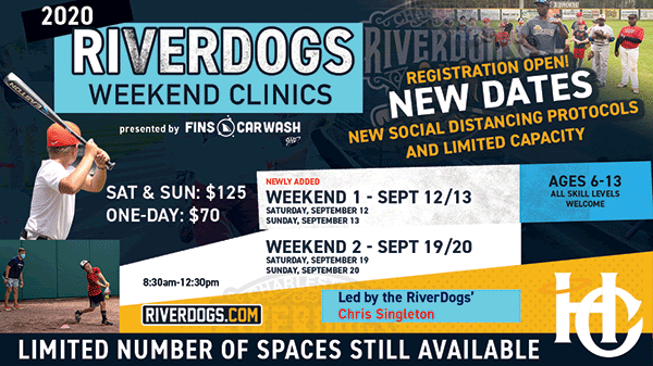 For kids 6-13, getting to improve their baseball skills on the green grass of The Joe at the instruction of former pro baseball player and RiverDogs director of community outreach Chris Singleton is a can’t-miss experience. After hosting weeklong camps throughout the summer, Singleton will now offer weekend clinics over the course of two weekends in September. The clinics are from 8:30am to 12:30pm, and campers can attend both Saturday and Sunday for $125 or pick one day for $70. The clinics will operate with the same COVID-19 precautions as the team’s summer camps and will be restricted in capacity.