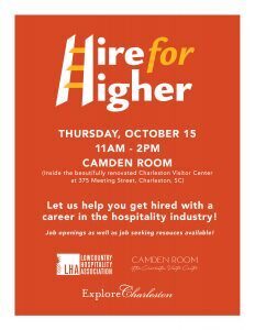 Explore Charleston and the Lowcountry Hospitality Association (LHA) are collaborating with community partners to host a hospitality industry job fair, “Hire for Higher,” on Thursday, October 15th at the recently renovated Charleston Visitor Center.