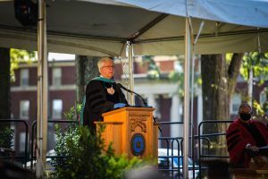 “Among all of the classes of graduates of this institution, your class is both distinctive and extraordinary,” he said. “No other class before yours has been through what you have experienced — in your senior year, no less.