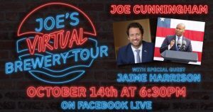 Tonight is the next “stop” on the Joe Cunningham Virtual Brewery Tour featuring special guest, U.S. Senate candidate Jaime Harrison.