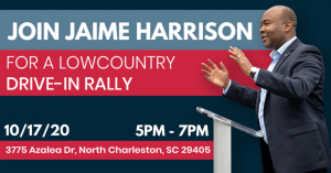 On Saturday, Jaime Harrison’s campaign will host the “Lowcountry Drive-in Rally” at The Bend in North Charleston.