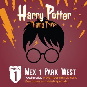 Mex 1 Coastal Cantina has two fun themed trivia nights coming up this month. First, they will host Harry Potter Theme Trivia at Mex 1 Park West on Wednesday, November 18th at 7 pm. That will be followed by Parks and Recreation Theme Trivia at Mex 1 West Ashley on Tuesday, November 24th at 8pm.