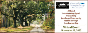 The Center will host “All Land is not Creating Equal: Unleashing Family and Community Wealth through Land Ownership,” a free virtual symposium, from 1 pm until 7 pm on Wednesday, November 18th.