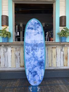 The board up for auction (right) is a teal color with an indigo fabric inlay made from a local indigo grower and dyer on John’s Island, Gina Perez.