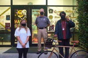 It all came together at the Public Safety office, where Phillips presented Sims with the new bike, and the Department of Public Safety presented him with a new U-bolt lock to help him keep his new ride safe and secure.