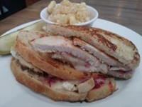 Smart restaurants such as Famous Toastery have filled the turkey void. The breakfast and lunch, aka brunch eatery carries a Turkey & Brie Melt, that is an everyday ode to the holiday staple. Thick slices of tender turkey on toasted sourdough, oozing with a brie and a raspberry puree. Succulent and tasty!