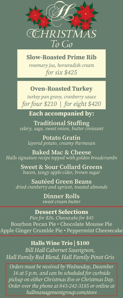Charleston Restaurants Offering Christmas/Holiday Dinner To Go (2020 Edition)