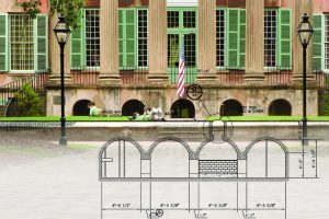 Perhaps the second-most known cistern on the College of Charleston campus is the tabby (oyster shell and lime) cistern in front of the President’s House. The cistern remains have been covered in moss and are a focal point in the garden to the Bishop Robert Smith House, a Georgian mansion that was built between 1774 and 1778 as the parsonage house for the rector of St. Philip’s Church. The house served as the home of the state’s first Episcopal bishop, Robert Smith, who also served as the College’s first president, and the gate leading to the cistern is a nod to the design of the gates at St. Philip’s Church.