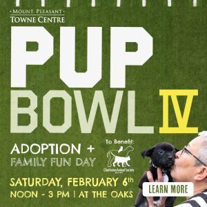 Mt. Pleasant Towne Centre (MPTC) and the Charleston Animal Society (CAS) will once again team up to host the 4th annual Pup Bowl on Saturday, February 6th from noon to 3 pm at The Oaks.