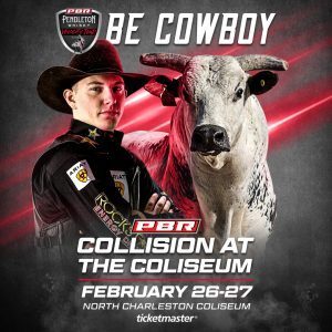 The PBR’s (Professional Bull Riders) Pendleton Whisky Velocity Tour (PWVT) will buck back into the North Charleston Coliseum next month. The PBR 2021 Collision at the Coliseum, the fourth event of the 2021 PWVT season, features back-to-back nights of white-knuckle man vs. beast competition on February 26th and 27th.