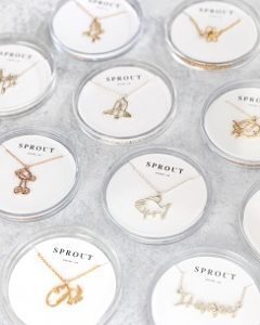 Sprout Design Lab was created after a last minute scramble to find a Mother’s Day gift. Jade Brown, the company’s founder, spent the afternoon taking her young niece to multiple jewelry stores before settling on a handmade card. Using the design on the card, Brown’s at-home 3D printer, and an old necklace chain, Sprout’s first piece was created. After seeing the necklace, people started making their own requests. Soon after, Sprout Design Lab was founded by a small team of female engineers who wanted to combine their love for celebrating children’s creativity with their passion for engineering design.