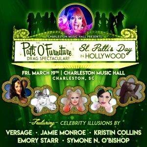 “The Patti O’ Furniture Drag Spectacular: St. Patti’s Day in Hollywood” will feature celebrity illusions by Versage, Jamie Monroe, Kristin Collins, Emory Starr, and Symone N. O’Bishop.