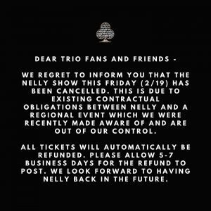 UPDATE: Trio announced on social media tonight that Nelly’s appearance at the downtown venue has been canceled. You can view Trio’s statement below: