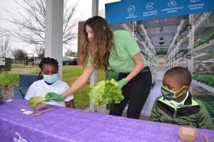 The district’s Office of Nutrition Services will incorporate lettuce from Vertical Roots in the salads offered in school cafeterias starting on Wednesday, February 24, 2021. Today, as part of the rollout, students at Chicora Elementary School participated in a taste-testing event with representatives from Nutrition Services and Vertical Roots.